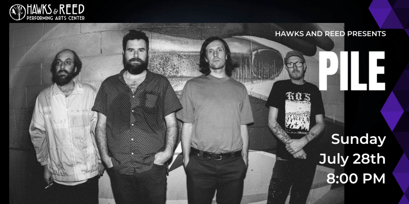 July 28, 2024 - 8pm - 11:30 pm Pile at Hawks and Reed Presented by Hawks & Reed $20-$25 Hawks & Reed BallroomDoors Open at 7:30 pm All Ages July 28, 2024 - 8:00 pm Pile at Hawks and Reed
