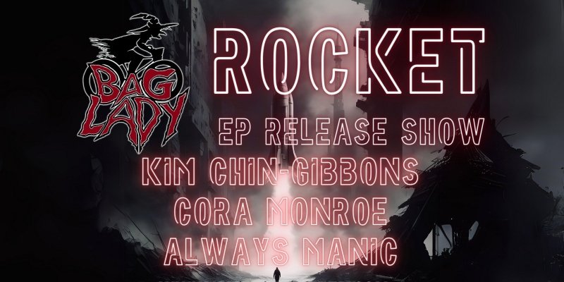 July 13, 2024 - 7:30 pm Bag Lady Rocket EP Release Show w/ Always Manic, Cora Monroe, Kim Chin-Gibbons at Hawks & Reed Presented by Hawks & Reed $10 - $15 Hawks & Reed BallroomDoors Open at 7:30 pm All Ages July 13, 2024 - 7:30 pm Bag Lady Rocket EP Release Show w/ Always Manic, Cora Monroe, Kim Chin-Gibbons at Hawks & Reed