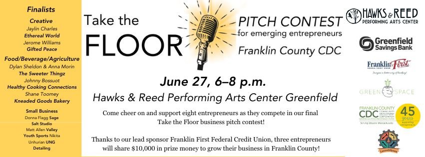June 27, 2024 - 6pm - 9pm Take the Floor – Pitch Contest Presented by Hawks & Reed FREE Hawks & Reed BallroomDoors Open at 6pm All Ages June 27, 2024 - 6:00 pm Take the Floor – Pitch Contest