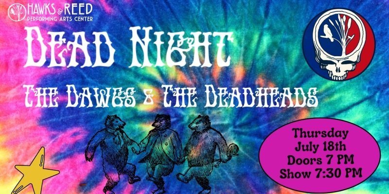 July 18, 2024 - 7:30 pm - 11:30 pm Dead Night with The Dawgs & The Deadheads Presented by Hawks & Reed $10 - $15 Hawks & Reed BallroomDoors Open at 7pm All Ages July 18, 2024 - 7:30 pm Dead Night with The Dawgs & The Deadheads